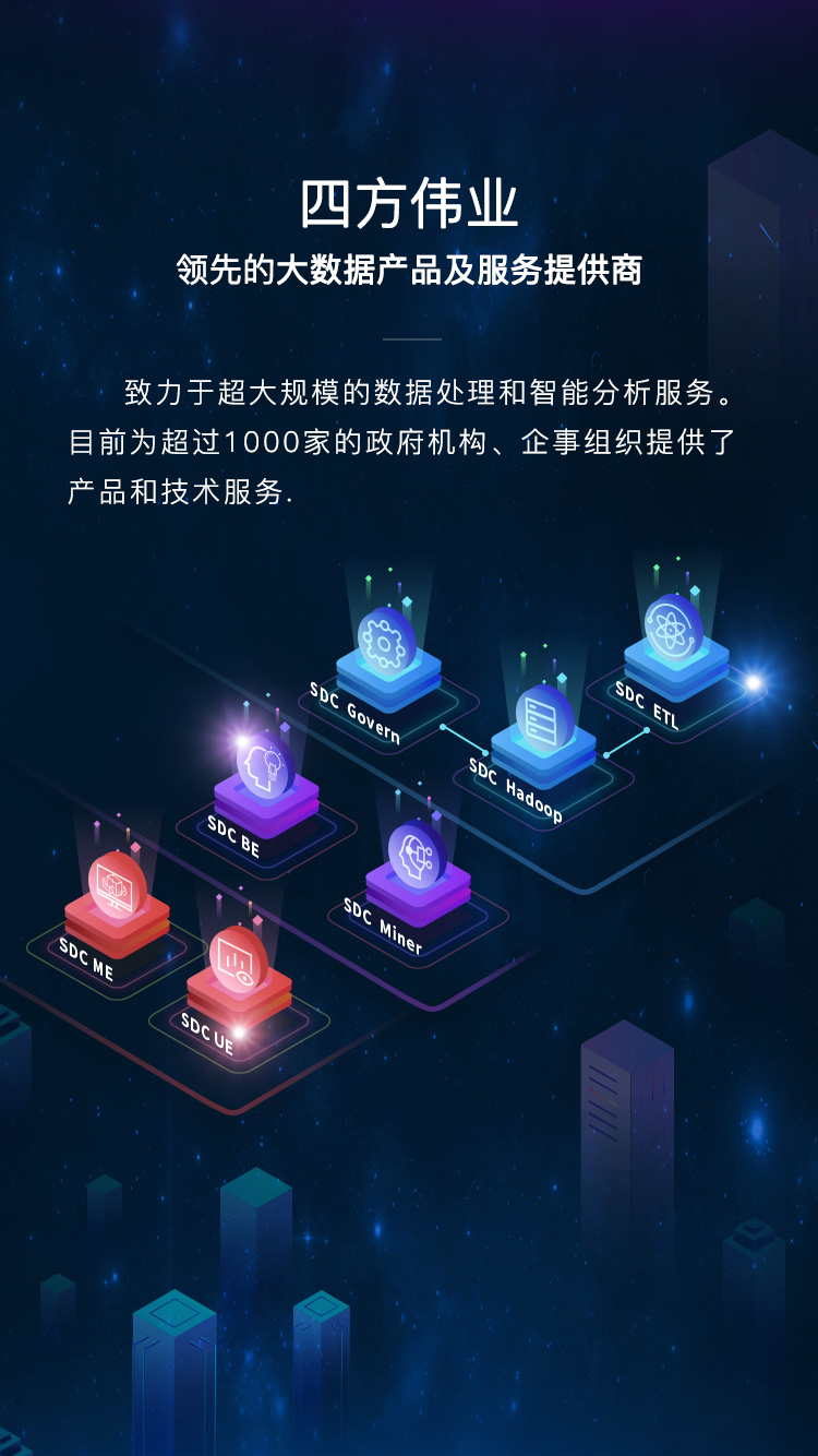 SDC ETL基于自主研發(fā)的大數據軟件產品,我們結合領先的創(chuàng)新能力并沉淀成功實踐的業務場景,全面提供覆蓋政府、軍工、能源、交通、金融、制造業等多個行業的典型應用場景。